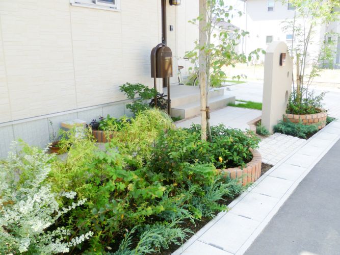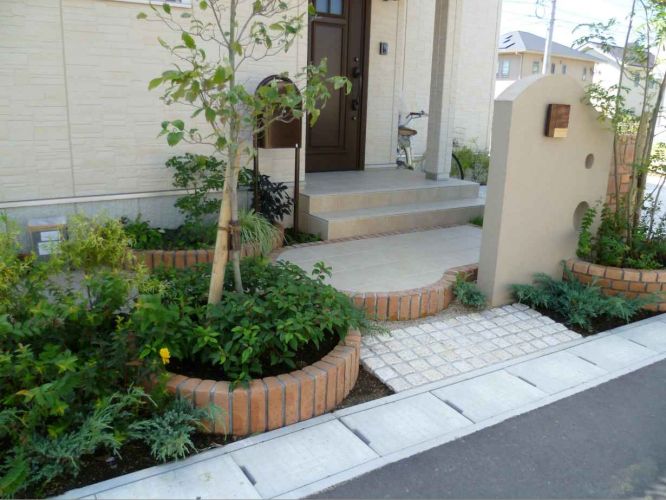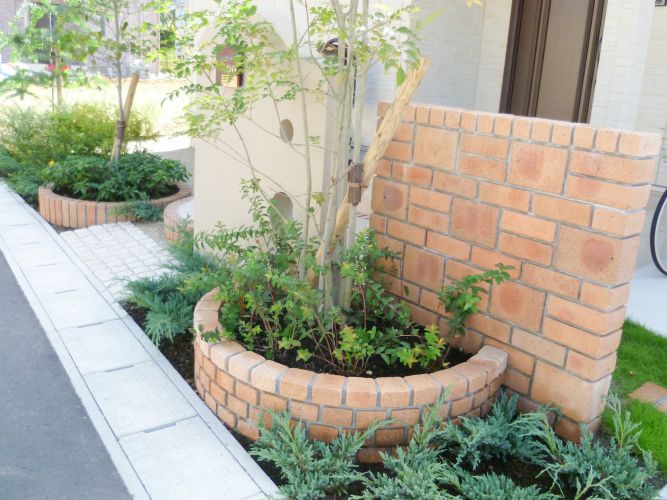 レンガ使いのかわいい門柱