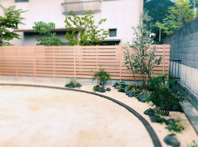 板塀・溶岩石と植栽