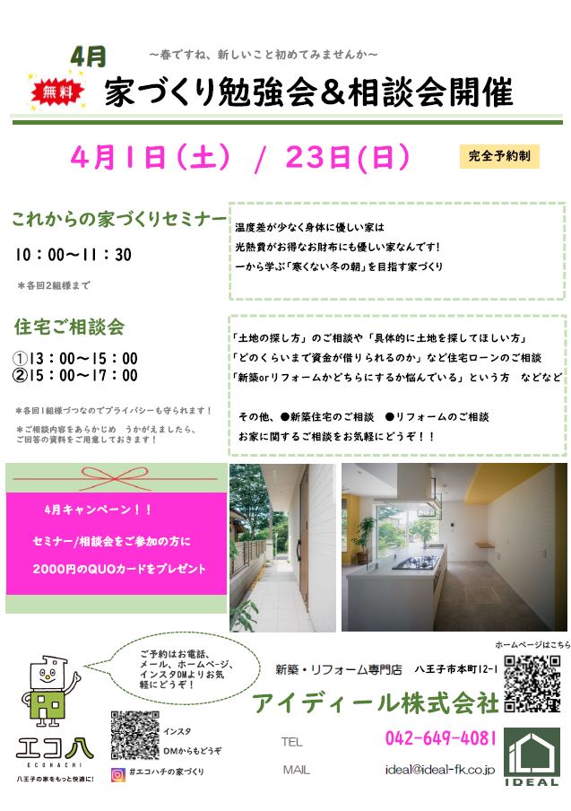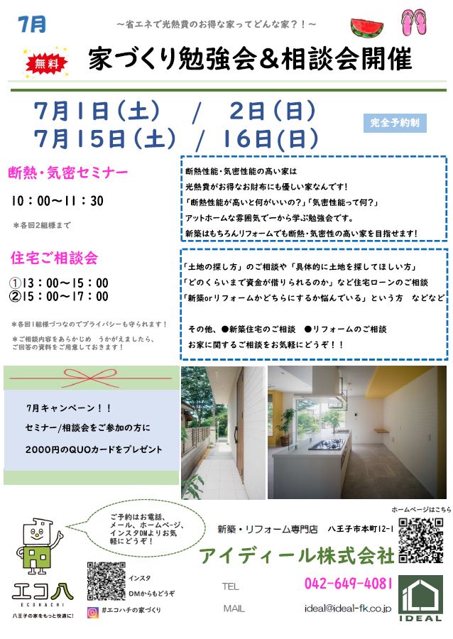 これからの家づくりセミナー 10:00~11:30【完全予約制】
