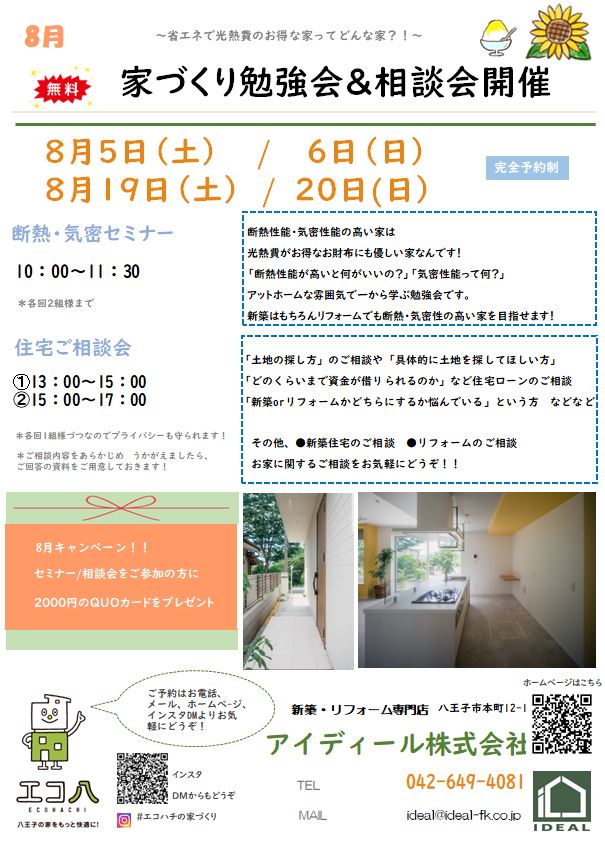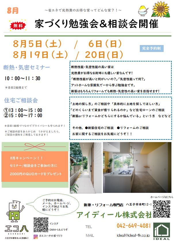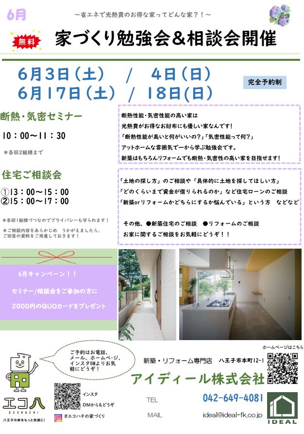 「高断熱・高気密の家は省エネでお財布にも優しい家なんです!」をテーマにした勉強会と個別相談会 /新築をお考えの方もリフォームをご検討中の方も、どちらがいいか迷っている方もお気軽にご参加ください!