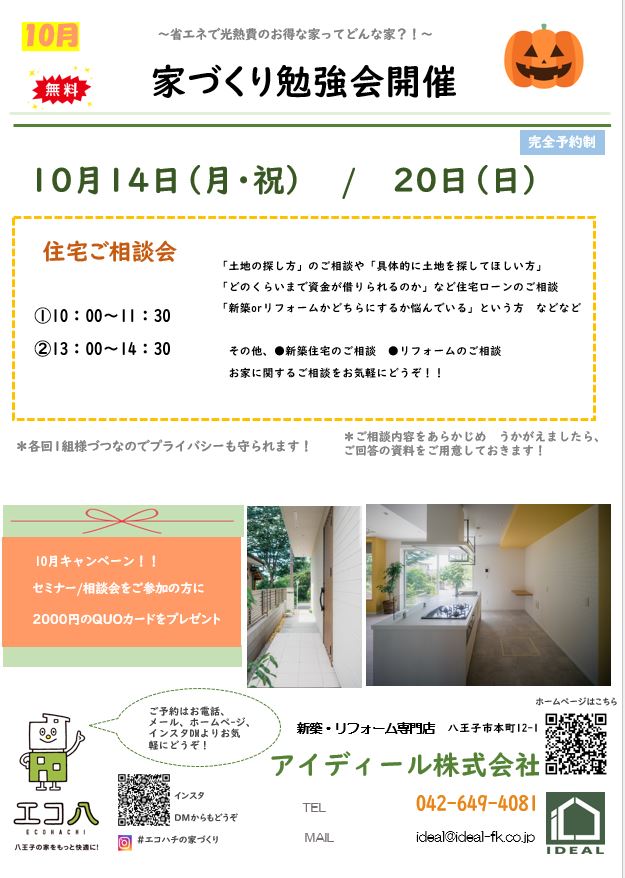 住宅ご相談会【完全予約制】 ➀13:00~15:00 ②15:00~17:00