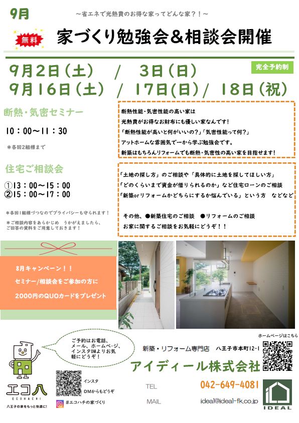 断熱・気密セミナー 10:00~11:30【完全予約制】