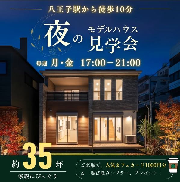 期間限定で夜のモデルハウス見学会&相談会を開催します。昼間お忙しい方や、照明プランをご覧になりたい方、お仕事帰りの方もぜひお待ちしております。2日前までのお申し込みをよろしくお願いいたします!