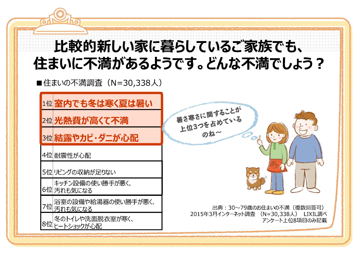 水道光熱費が高い、冬寒く夏熱いという不満もあるようですから、