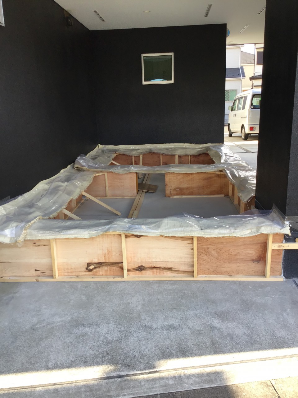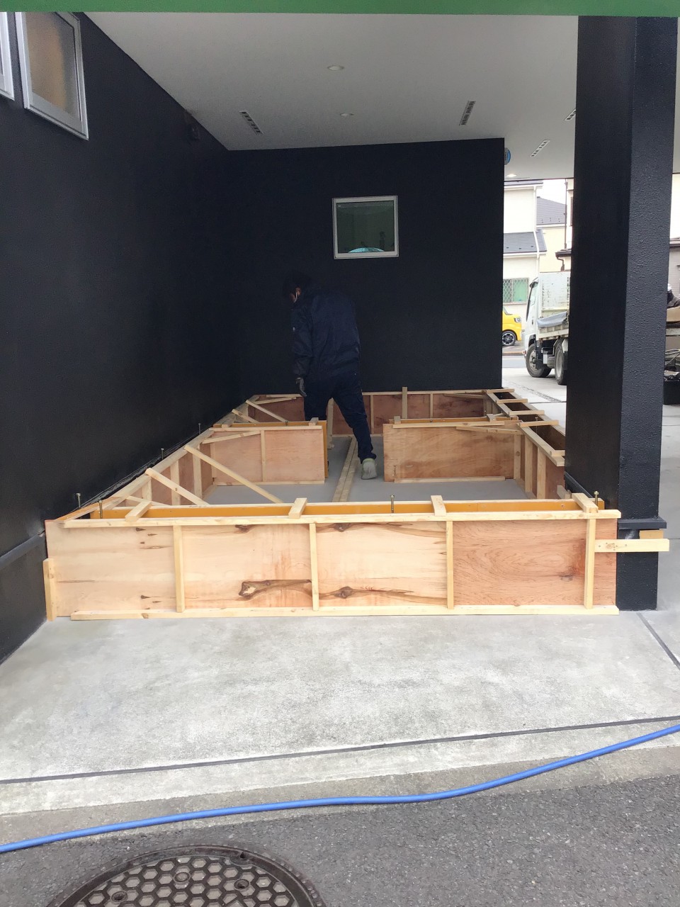 コンクリートを流し込む為の枠を設置します。