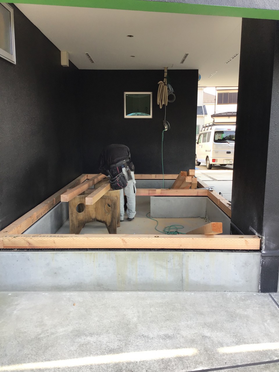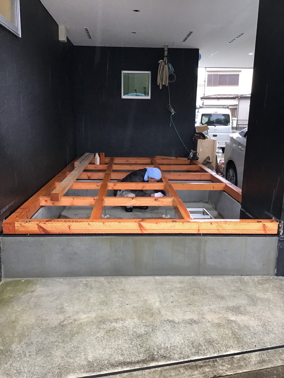 さて、以前ご紹介した設計事務所様の増築工事ですが先日土台敷きを行いました。
