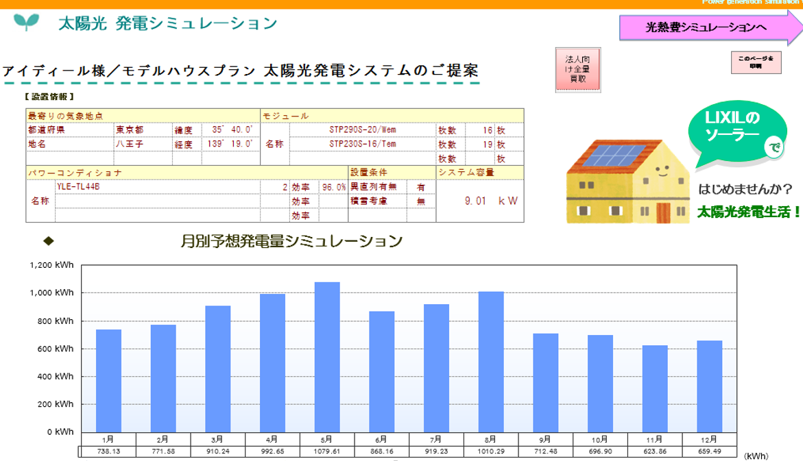 828k/whという結果になりました。設置前のシュミレーションは