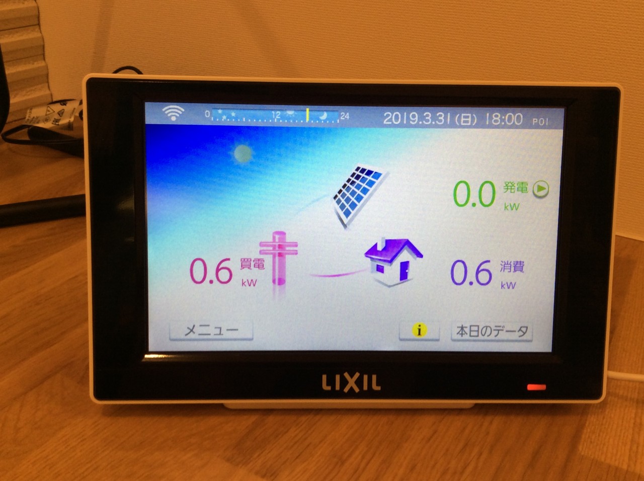 太陽は出ておらず発電していないので0となっています)