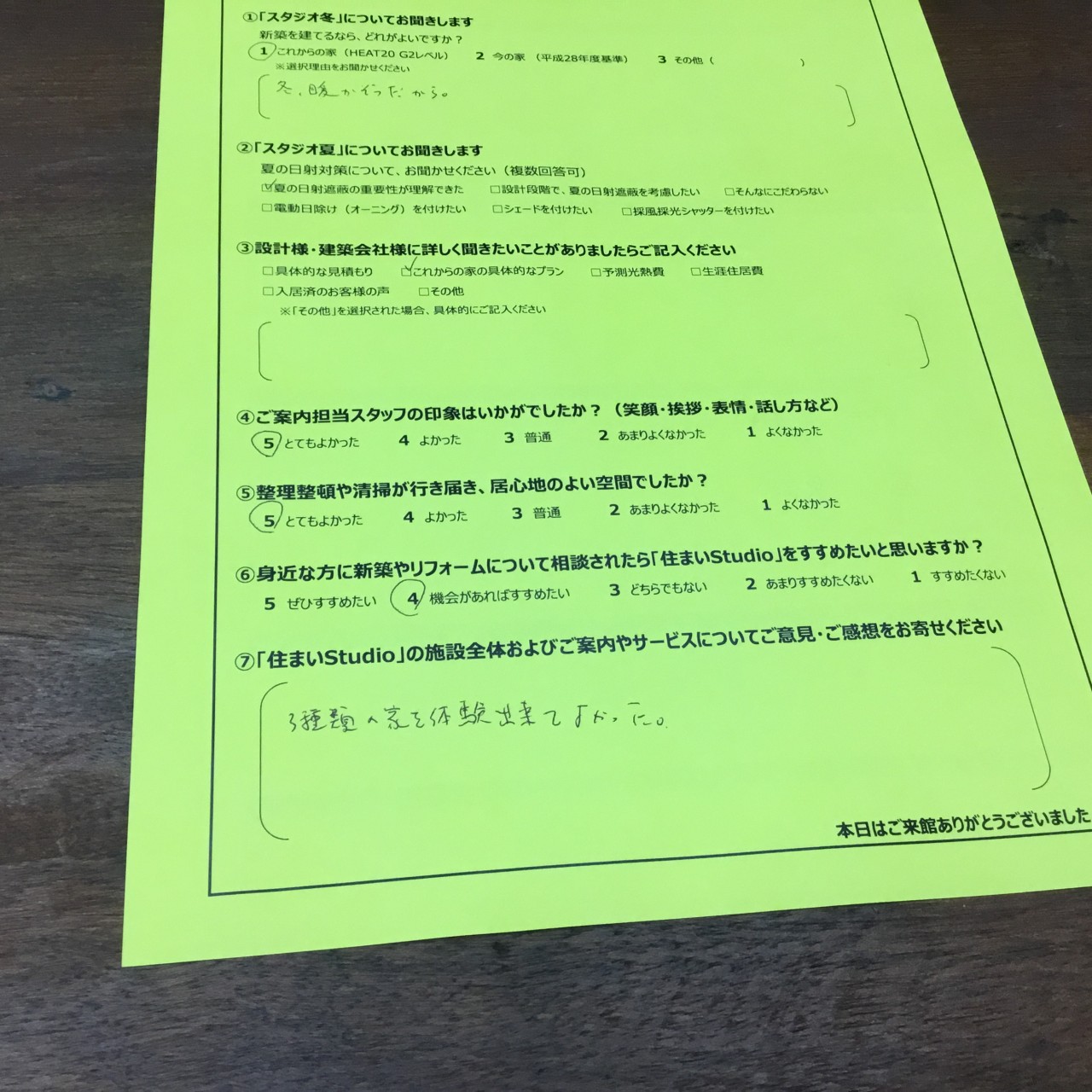 見学をして頂いたT様からも感想を頂戴しました。