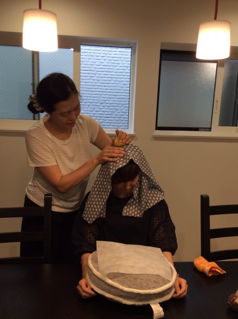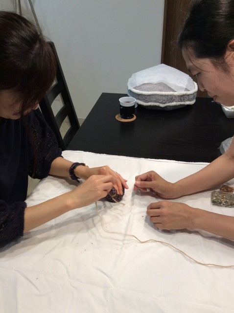 こんにちは。佐藤です。前回のブログにひきつづき、7/15(月)祝日にアイディールで開催されるワークショップのご紹介です。(前回のブログもぜひご覧くださいね)ワークショップに先駆けて、ハーブボールの池田先生にお越しいただき、アイディールの女性陣で体験してみました。当日は¥500で①ハーブボールの制作+使い方などのレクチャーコース ②ハーブボールによる施術体験 のどちらか、もしくは①②で¥1000でおこなっていただけるそうです。と、いうことでいざ制作♪