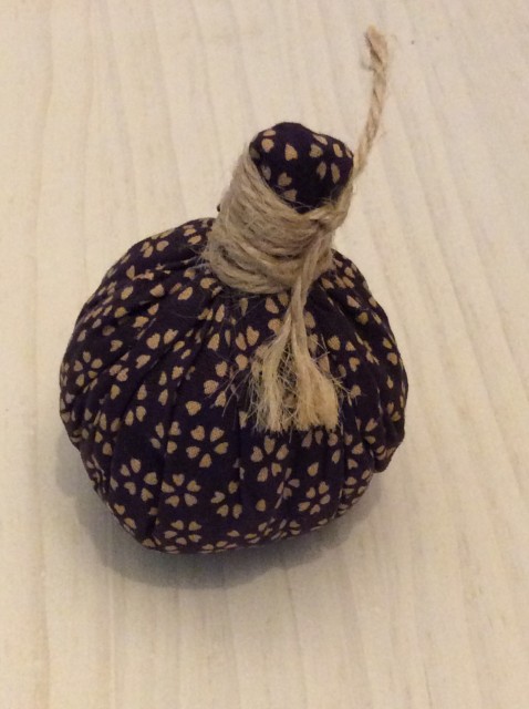 ハーブをぎゅ、ぎゅと布で包んだら、麻紐で閉じて、閉じた部分の上を持ち手にします