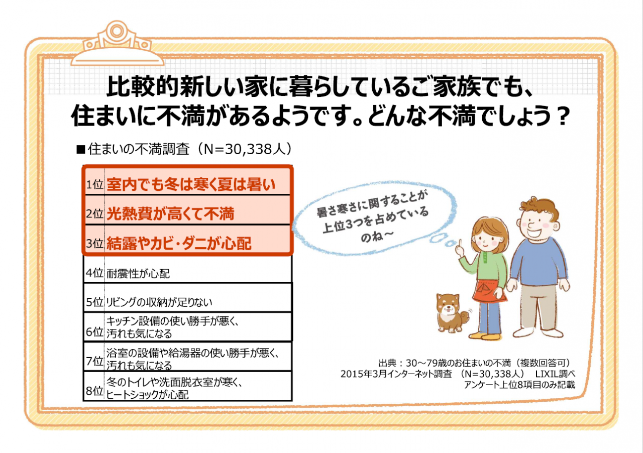 「キッチン、浴室、便器や手洗いなどの設備機器の使い勝手や汚れが気になる」ということが上位にきてしまい、