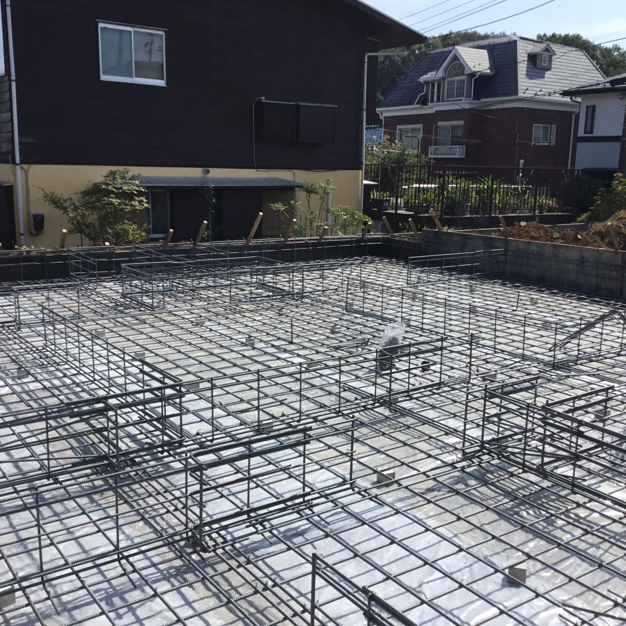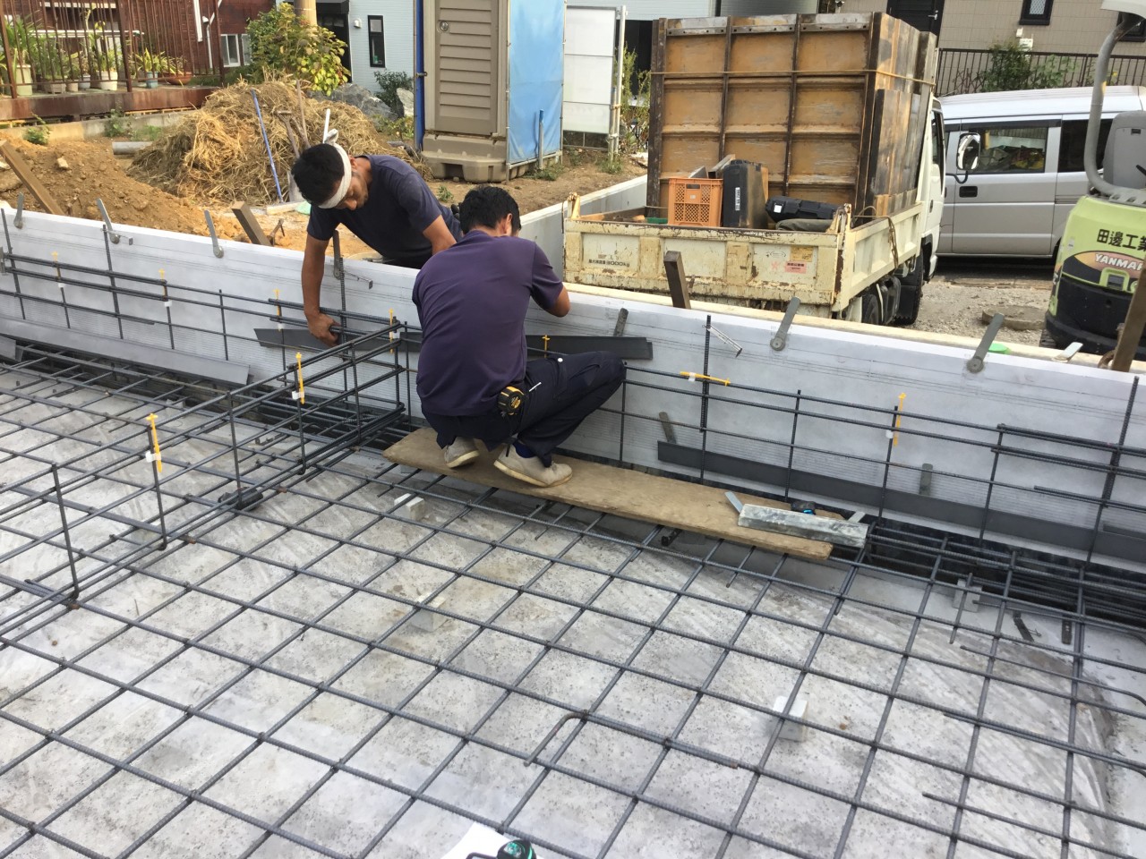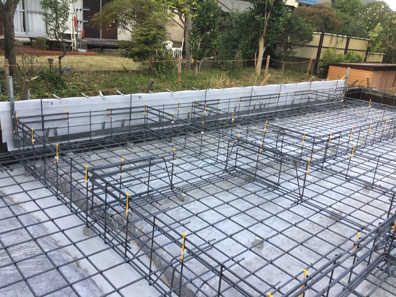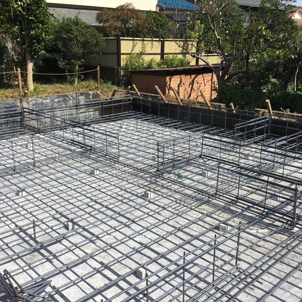 配筋工事が完了したら、第三者機関の検査を受けて、コンクリートを流し込みます。