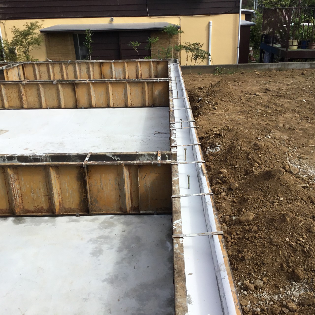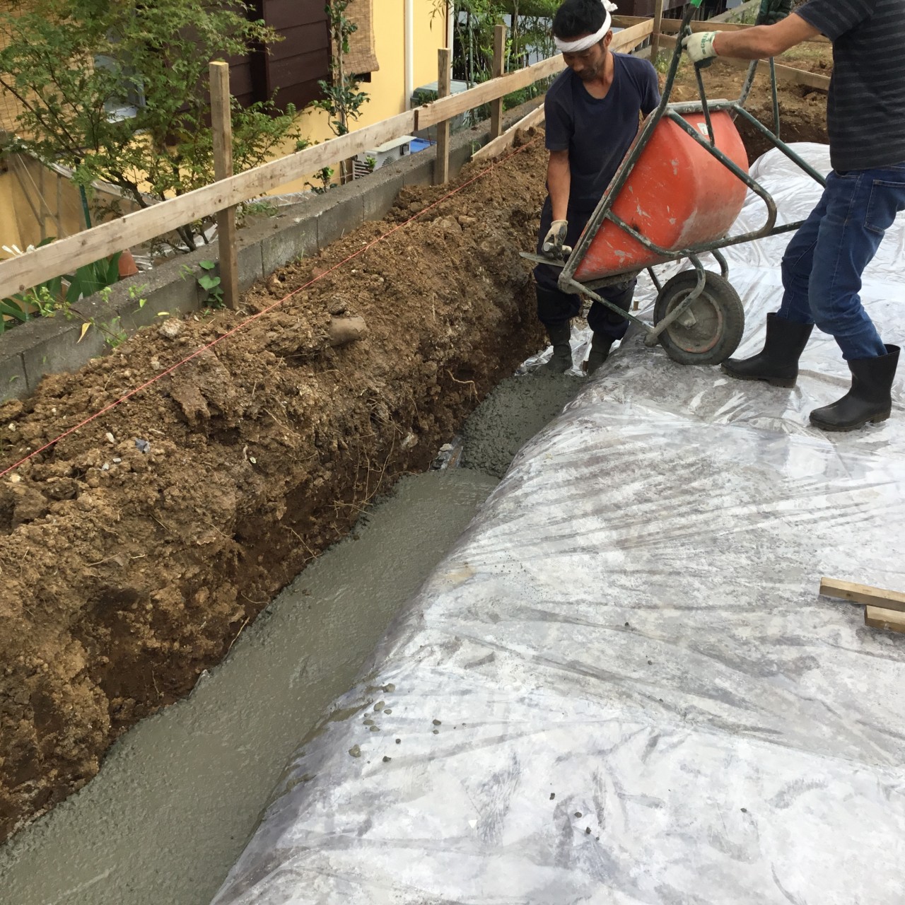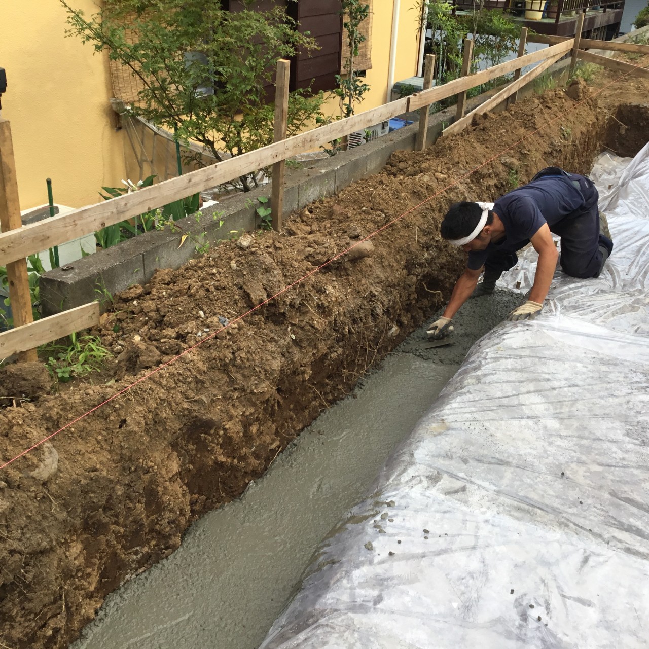 こんな感じで、外周部にコンクリートを流し込みます。
