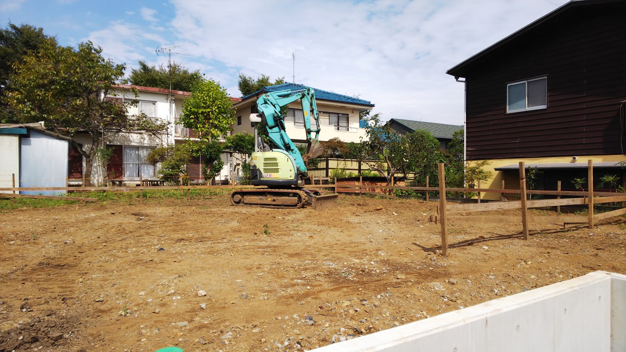 遣り方の工事が完了したら、次は根切り(掘削)工事に入ります。
