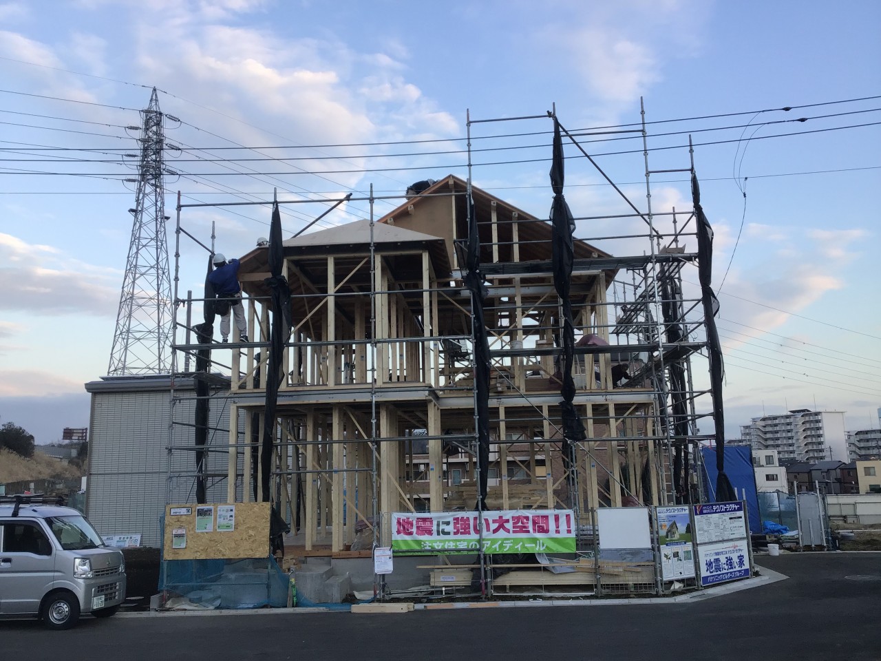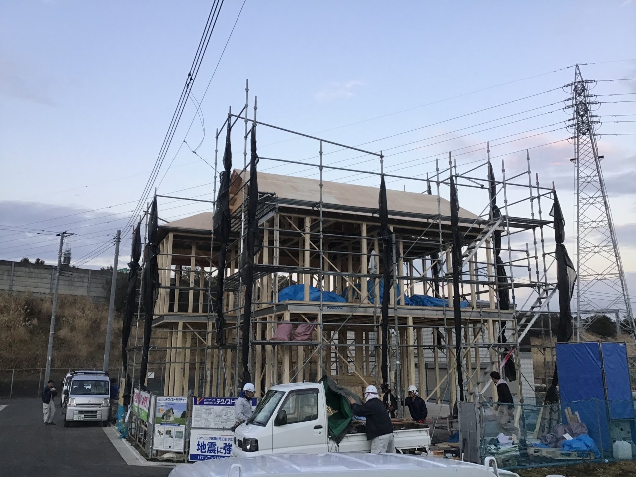 先日ブログでご紹介した、パナソニックのテクノストラクチャー工法の家の上棟をしました。
