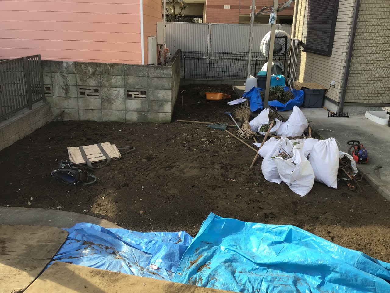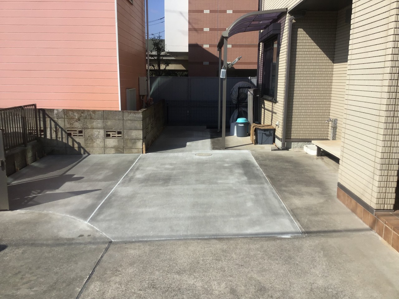 お施主様のご要望は、雑草の手入れが面倒だからお庭をコンクリートにしたい+宅配ボックスを設置して不在時でも荷物の受け取りをできるようにしたいとのことでした。