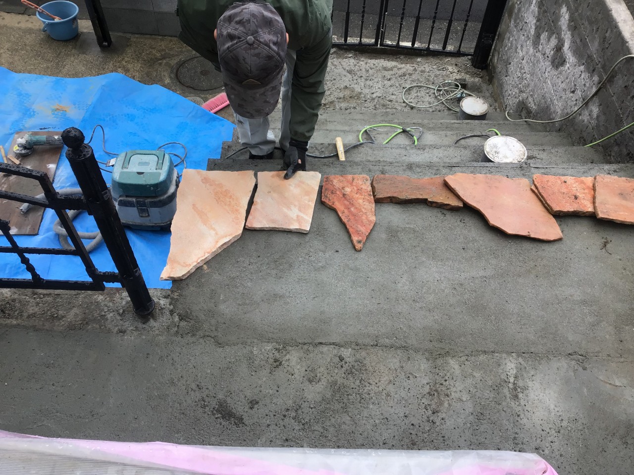 そこから全体のバランスを見ながらタイル•乱形石を貼っていきます。