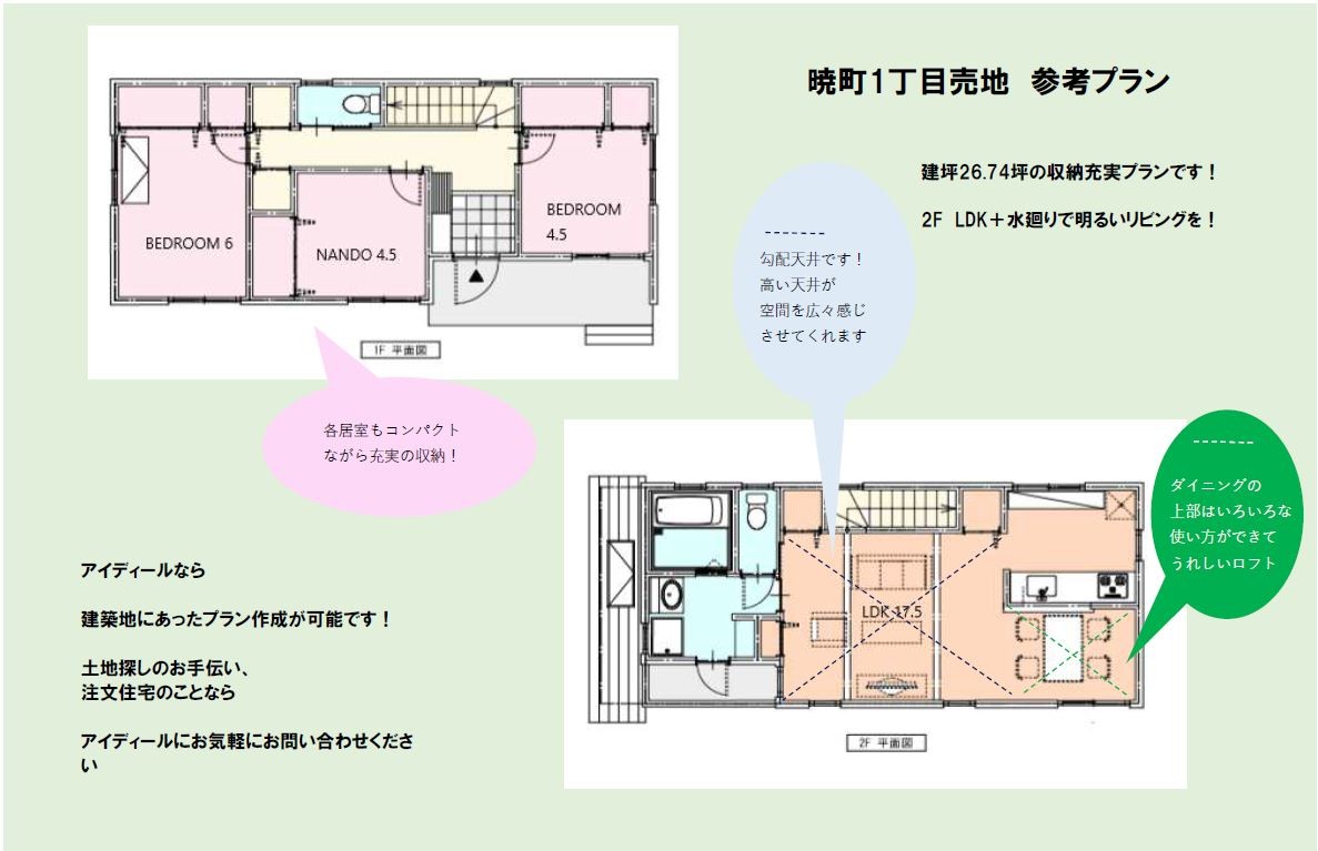 このように敷地にあわせた参考プランがあると売地情報を見ていただく方にもわかりやすいかと思いますので、今後もプランを入れていきたいな、と思っています。 また建て替えの方や、土地をお持ちでしたり、土地を迷っていらっしゃる方もご希望いただけましたらプラン作成可能ですので、ぜひお気軽にお声がけくださいませ。建築会社ならではの建物のご提案や建築会社だから言える建築地としての土地選びのポイントのご提案を致します!どうぞお気軽にご相談ください。