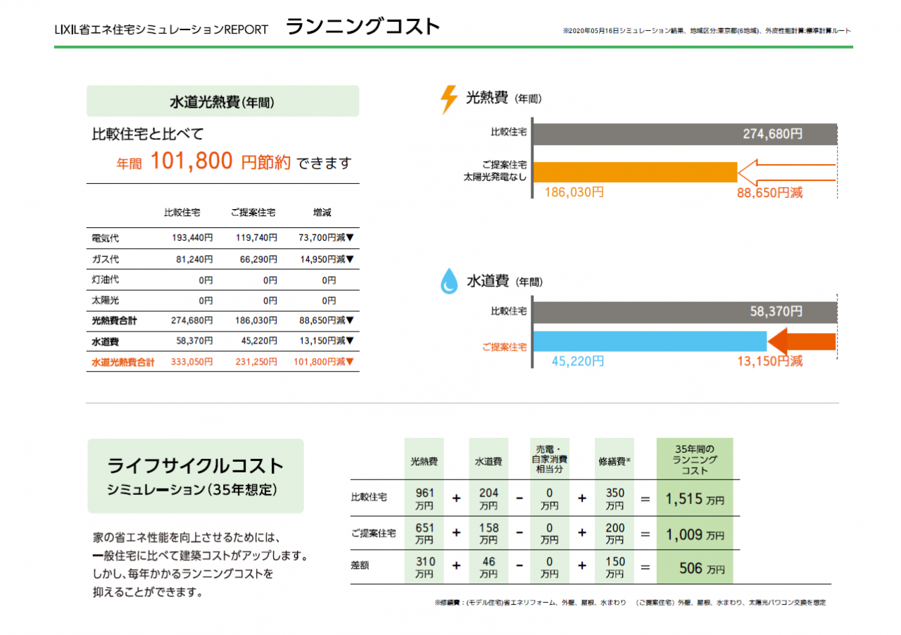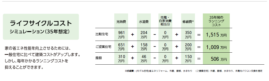 水道光熱費とライフサイクルコストに差があるのがお分かりでしょうか?
