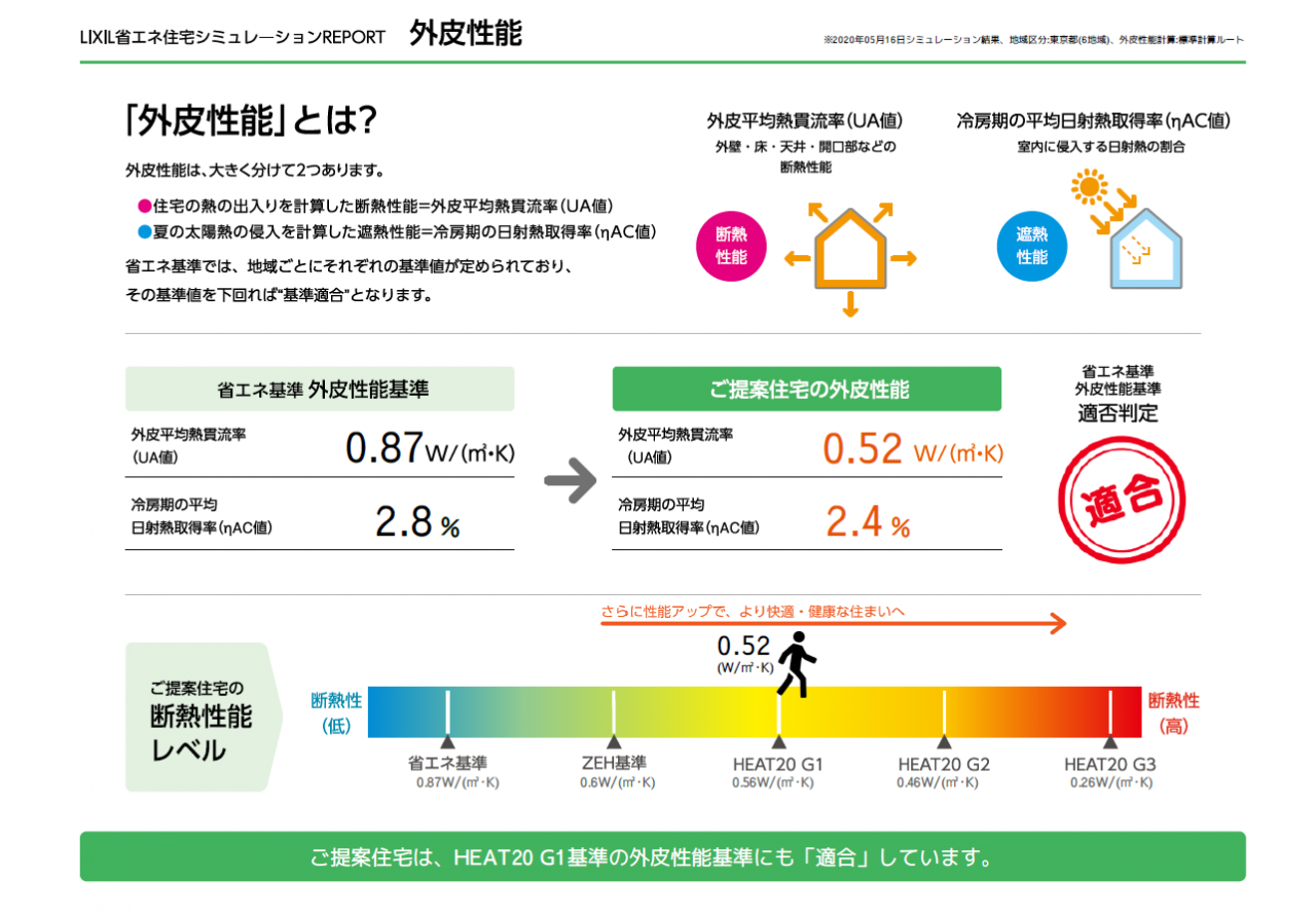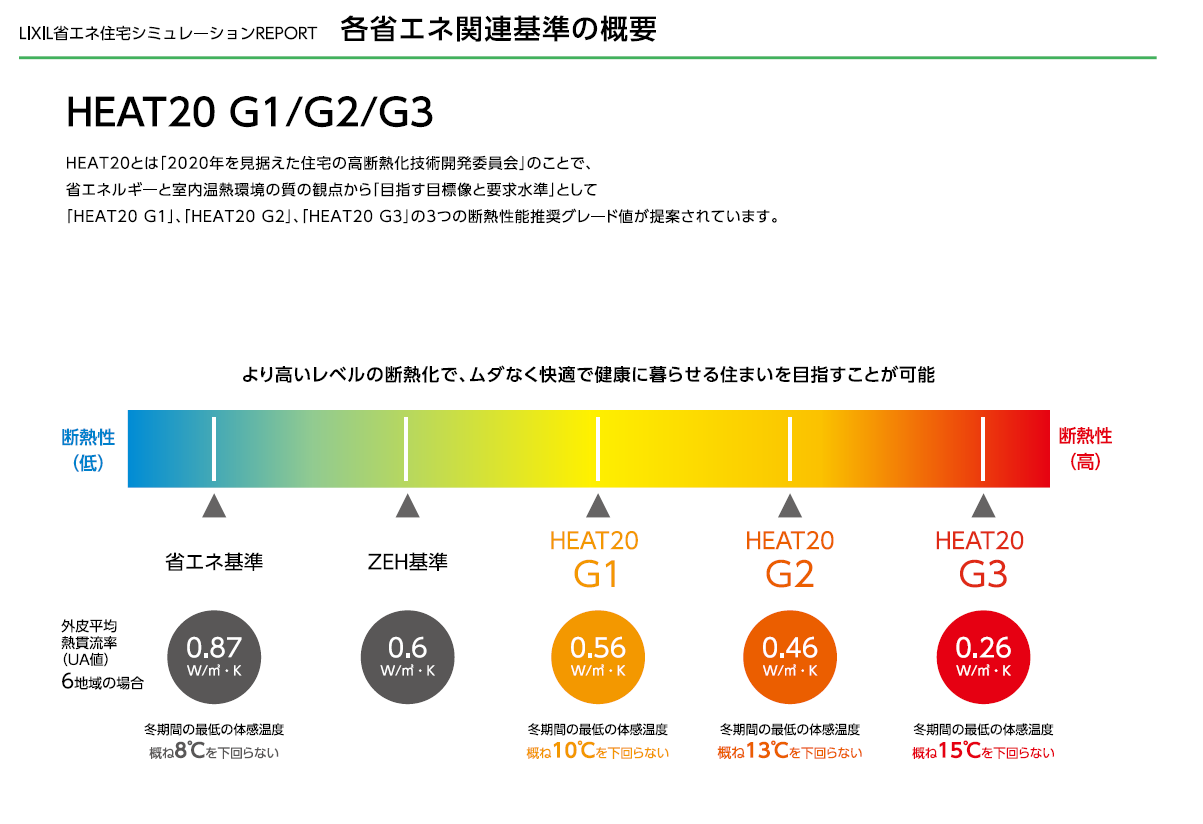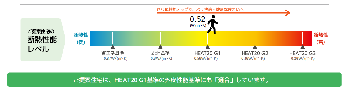 この表では下に断熱性能レベルとあり、HEAT20G1レベルとなっている事が分かります。