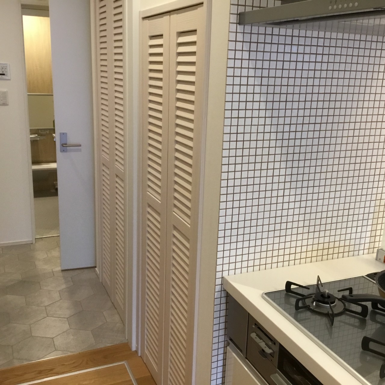 それから、この物入の扉ですが、前が開いているルーバー仕様になっています。