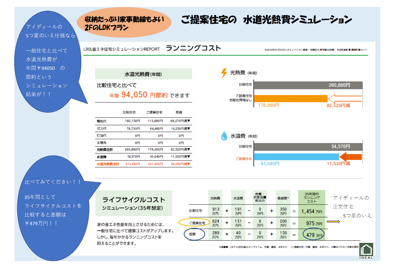 仕様や建物の細かい説明はまたの機会として、この建物も水道光熱費のシュミレーションをしています。
