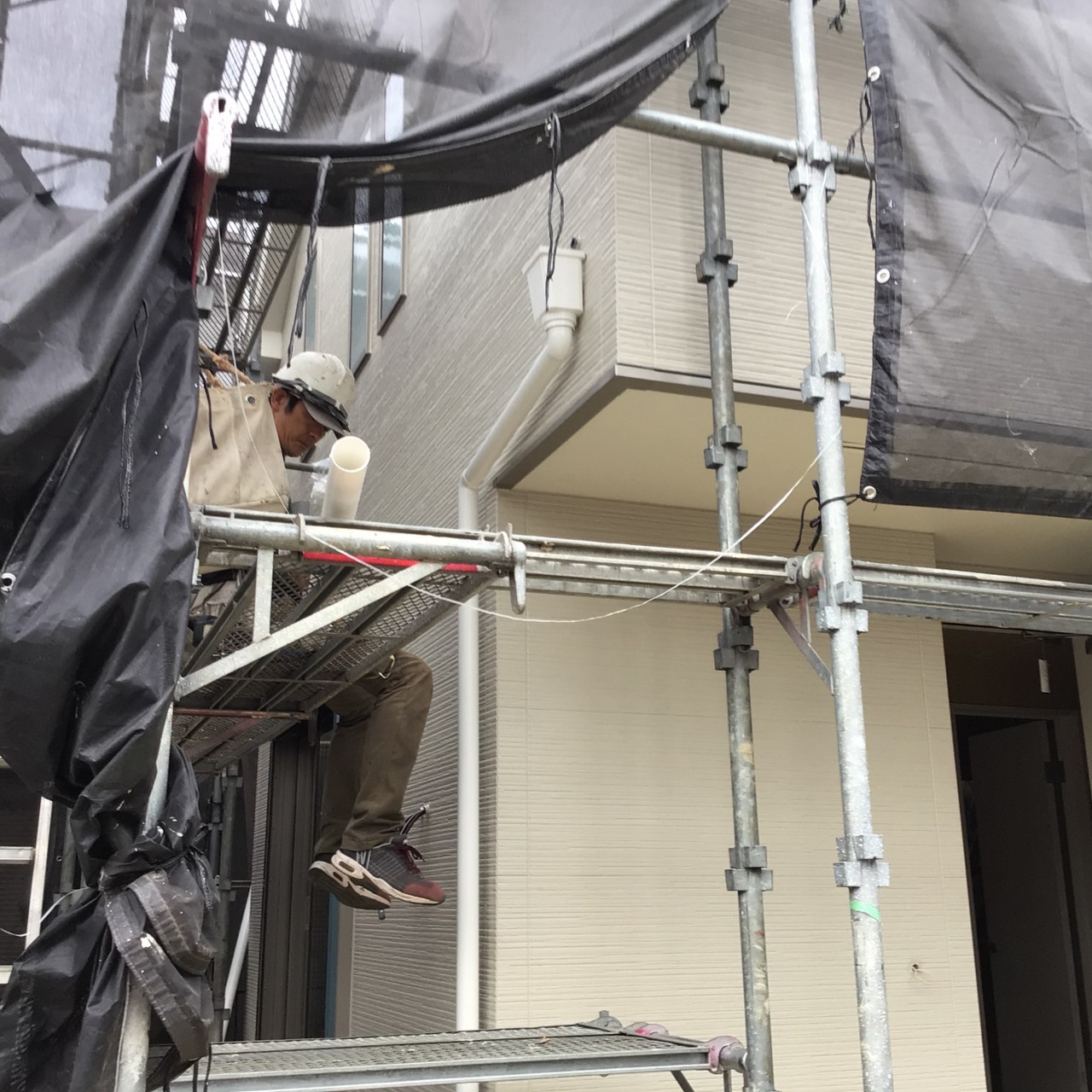 こちらの現場ですが、現場へ行くと職人さんが雨樋の工事をしていました。