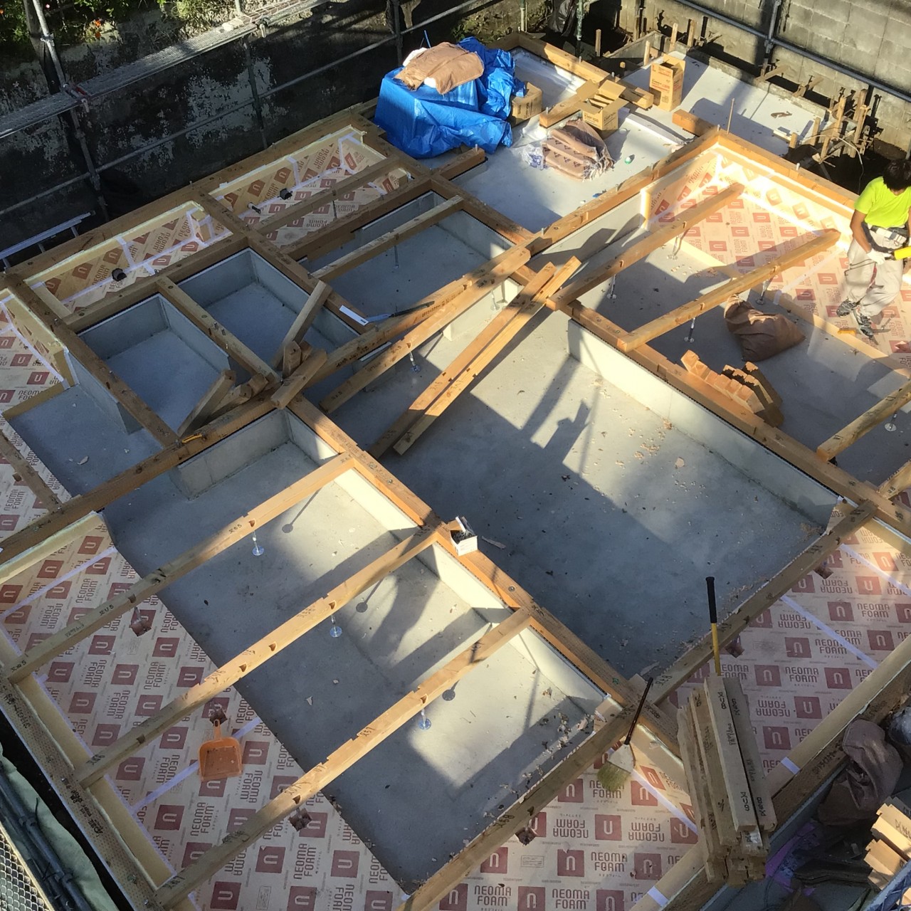 ちなみに床は今回の様に上から厚い合板を敷く方法と根太工法というのがあります。