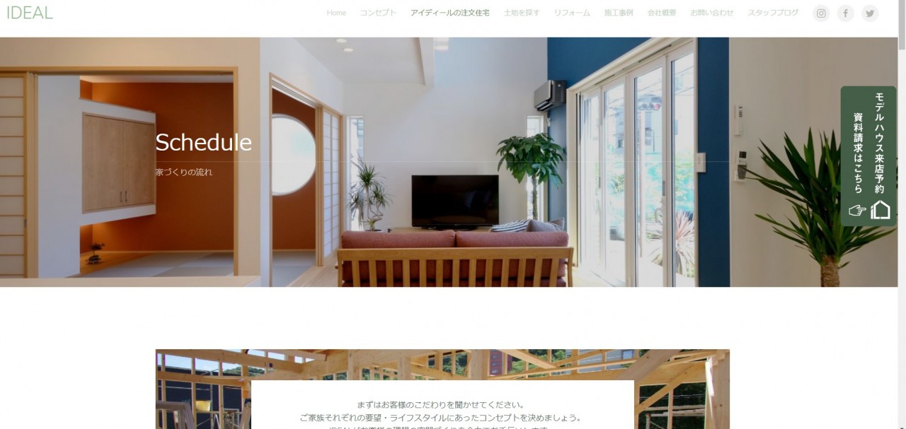 他にも、弊社の家づくりのコンセプトの修正や土地探しやイベントのページを追加しました。