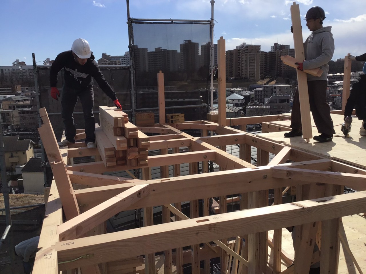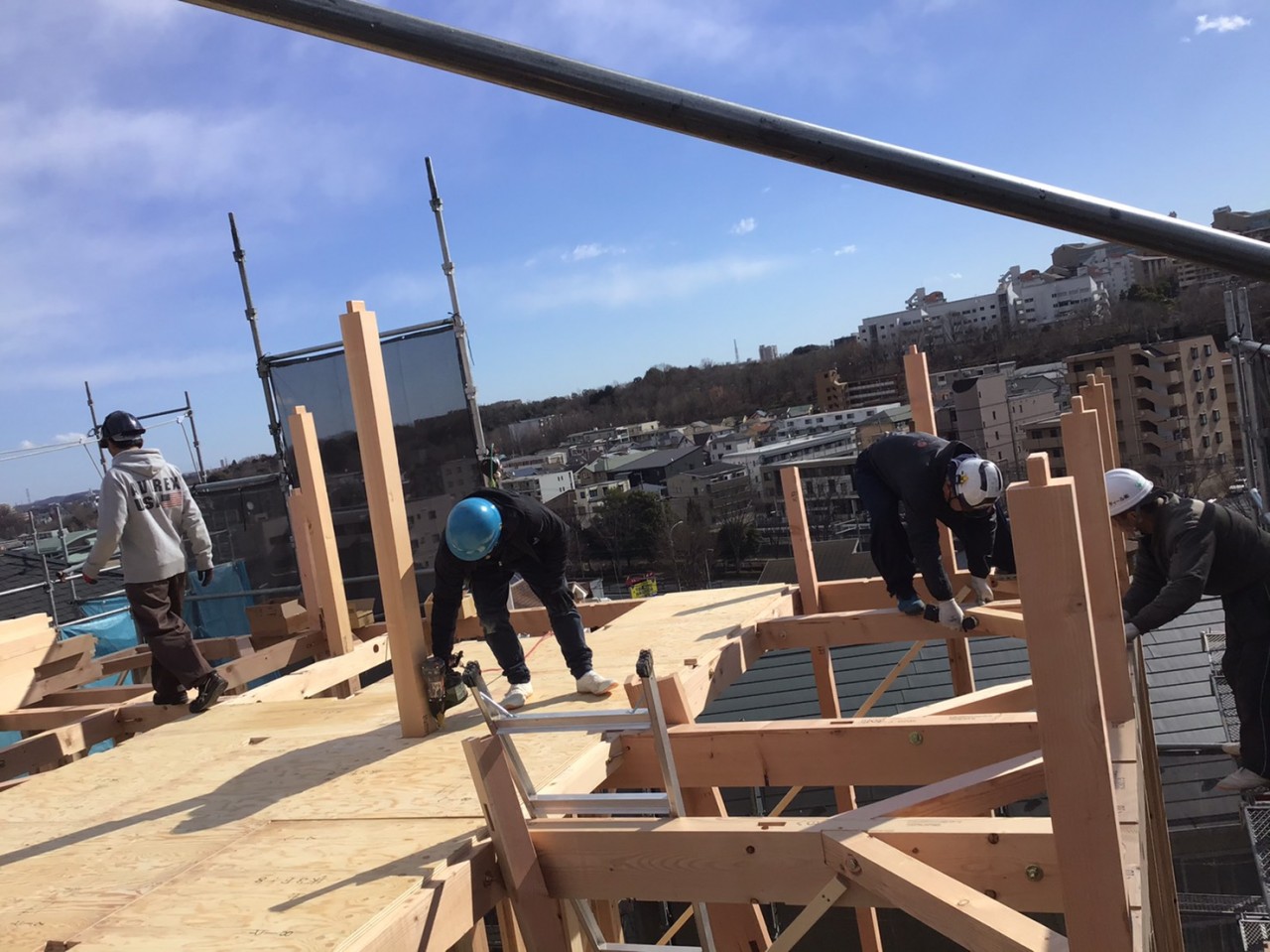 上棟は1日で木造の軸組が出来ますので、よく「早いですね!」と言われるのですが、