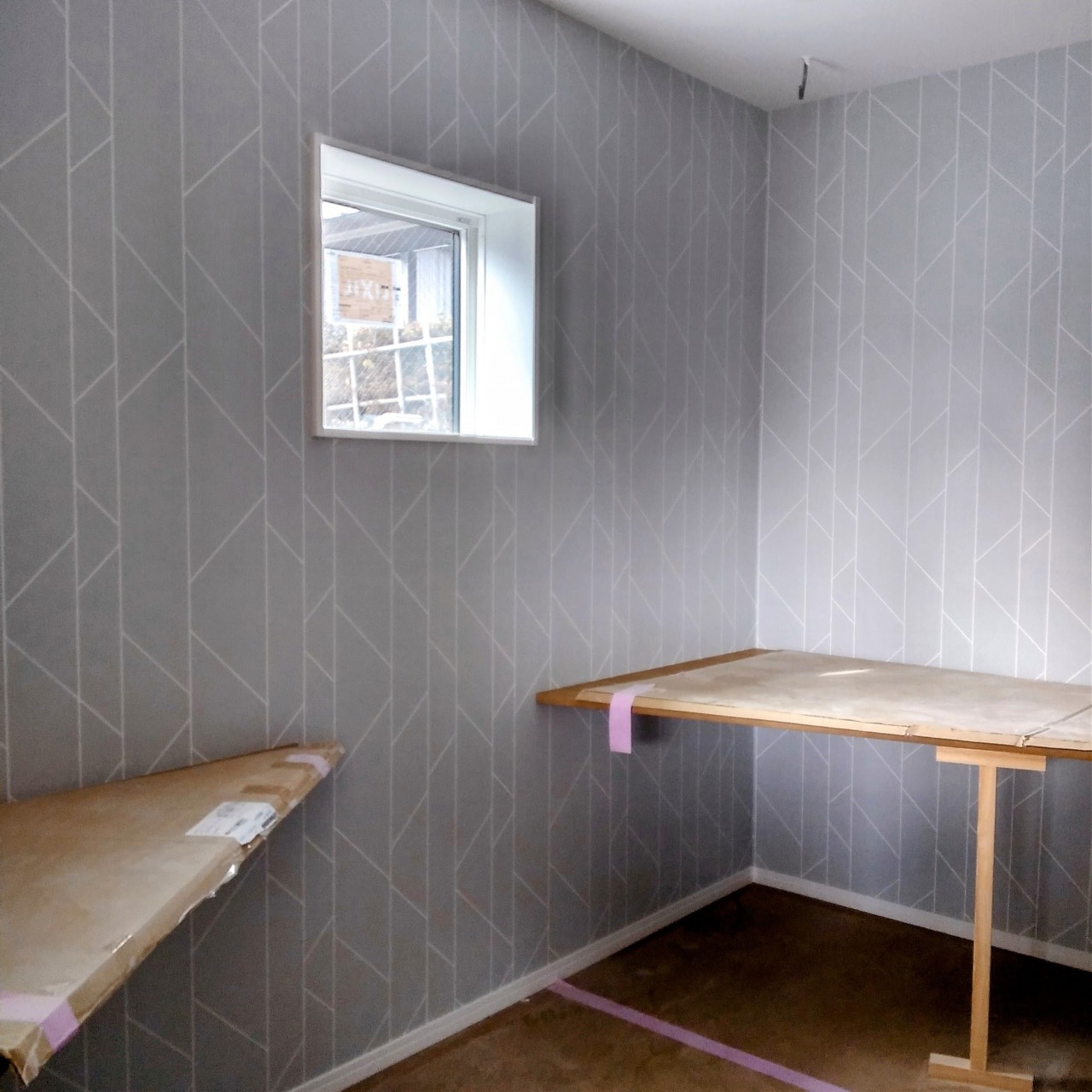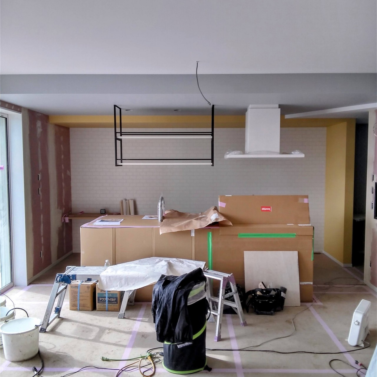 現在クロス工事中で、カフェキッチンが入りました。