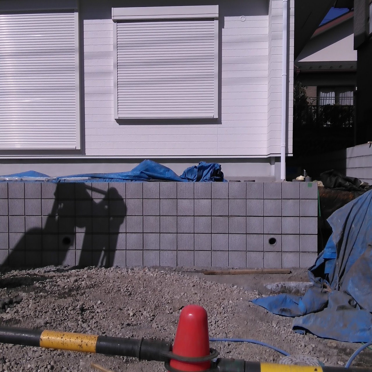 現在の現場の状況ですが、外部は型枠ブロックで土留め工事をしています。