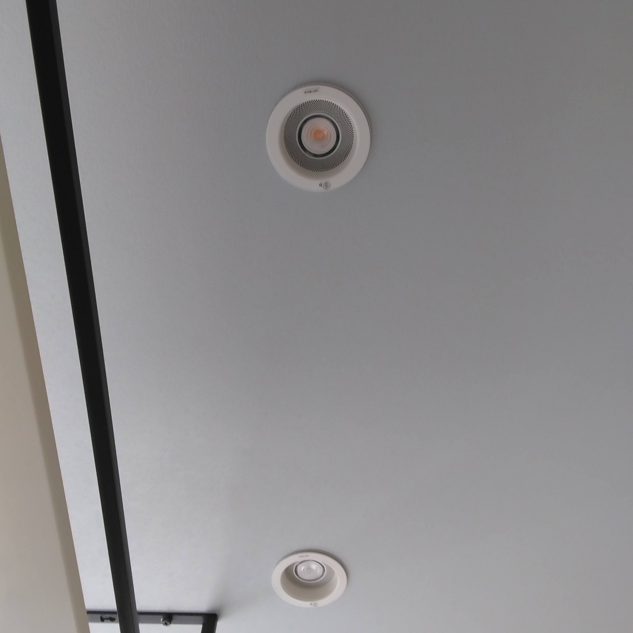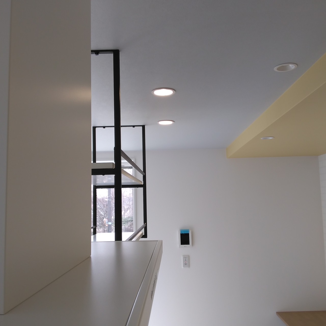 キッチン上にはBluetoothでつなげられるスピーカー付きダウンライト、これならお料理を作るのも楽しいですね!