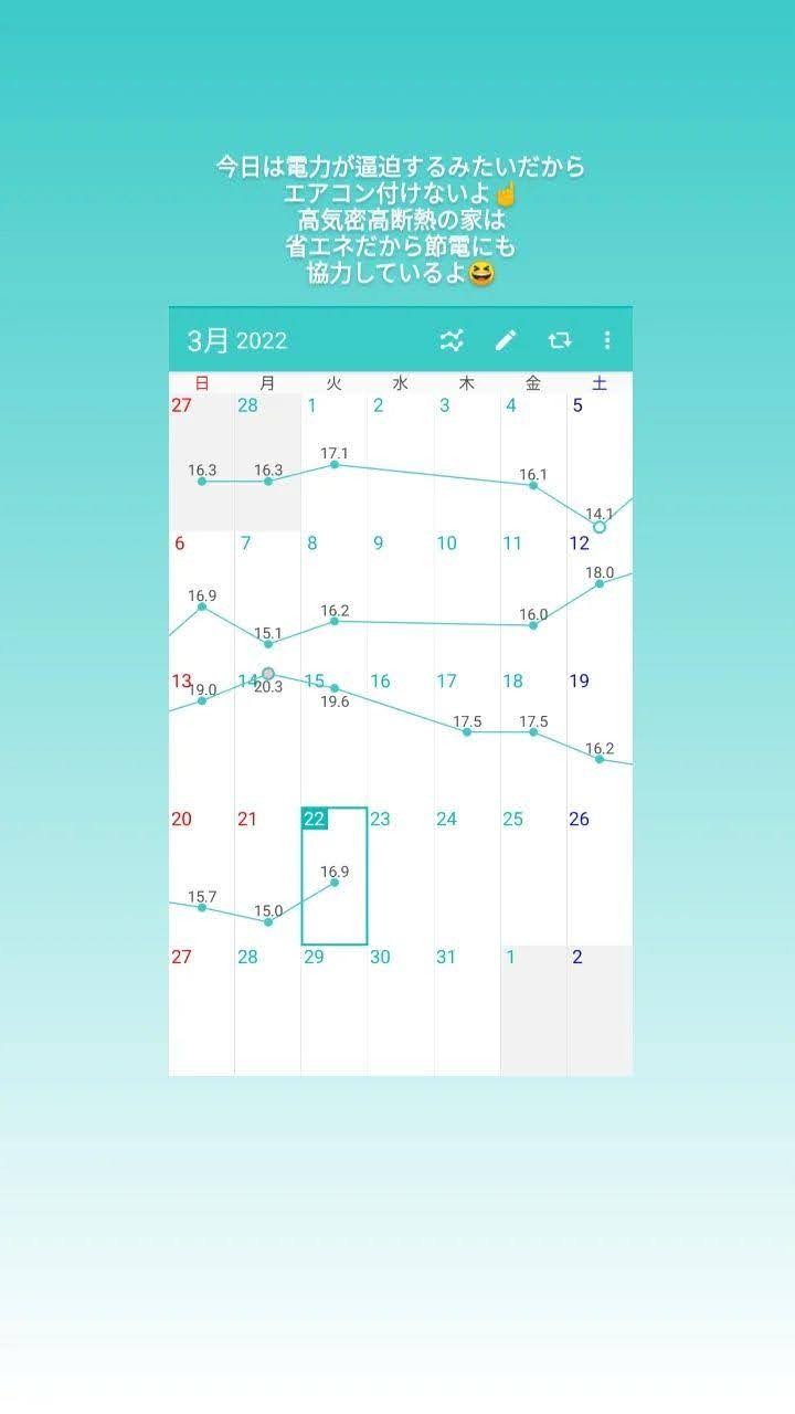 モデルの室温は定休日をのぞきほぼ毎日インスタで投稿をして、記録しています。