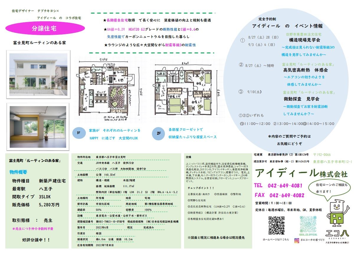 次に八王子市富士見町で「2階にエアコン設置したら、室内がこんなに涼しいの?」の見学会を8/27(土)から、