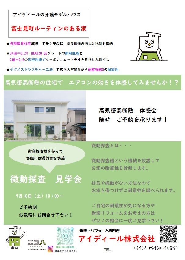 さて次に耐震等級3の性能を確かめるべく、同じく富士見町で9/10(土)10時から微動探査見学会を開催します!