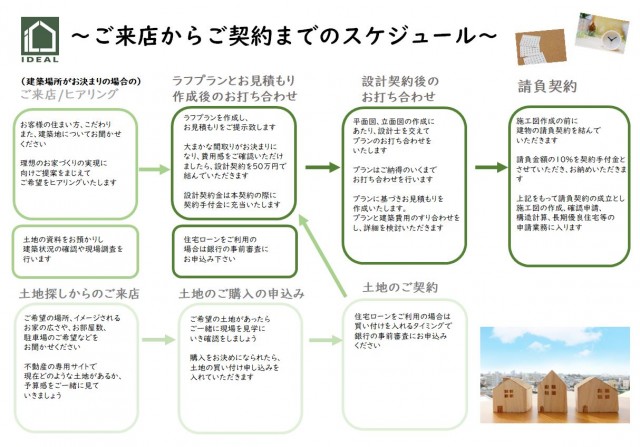 上の表にありますが、設計契約前に一度無償でおこなっており、そこでおおよその費用感をつかんでもらい、設計契約後はそれをベースにお話を進めていきます。