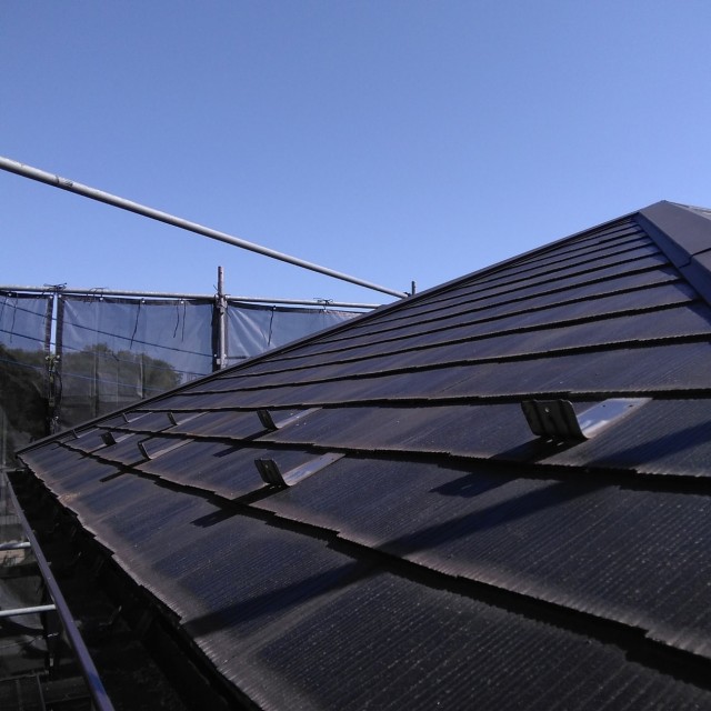 その上に仕上げ材である屋根材を施工していきます。