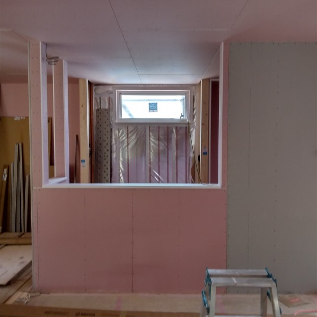 こちらの木工事も佳境に入ってきたので、カウンターの納めやクロス決めをするために、実際のイメージをつかむがごとく、先日久しぶりに現場へ行ってきました。