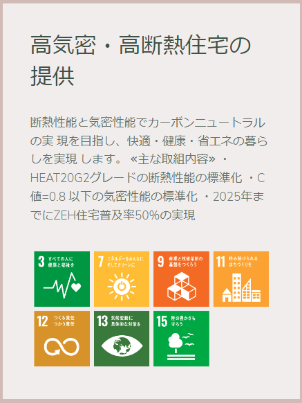 その中の一つの「高気密・高断熱住宅の提供」という項目に、