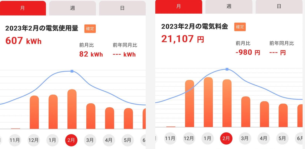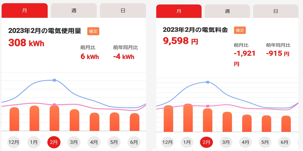 ちなみに、下がガス併用の我が家の2月の電気代です。