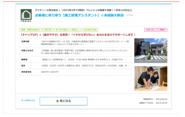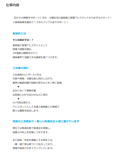 さて、話は戻り、求人は「現場監督」として「施工管理アシスタント」を募集します。