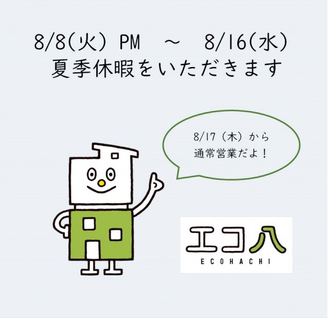 8/8(火)~8/16(水)まで夏季休暇となります。