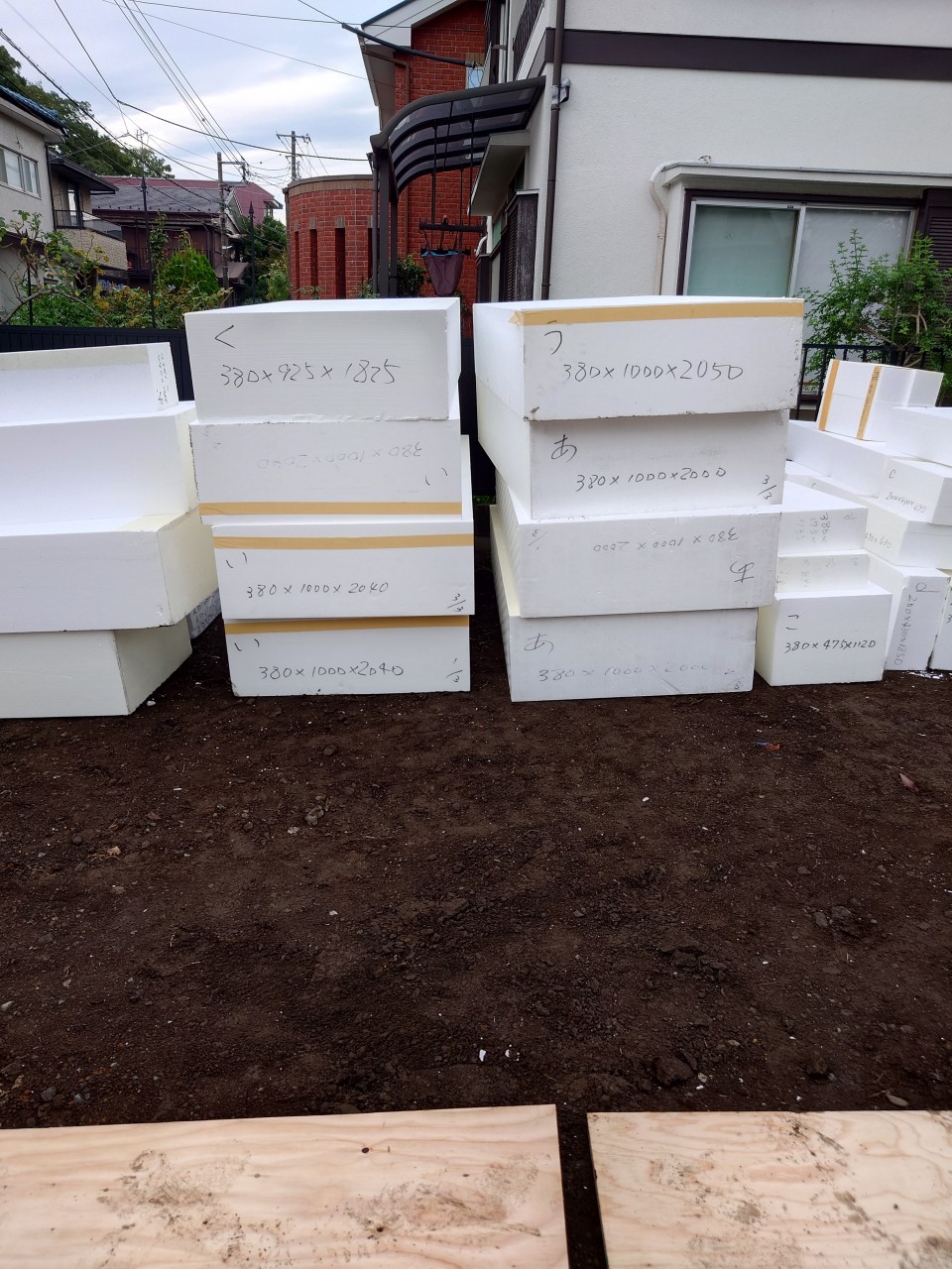 建物下の土を重い土を取り除き、その上に「ジオフォーム」という特殊な発泡スチロールを敷き詰め建物重量を軽くして不同沈下を抑える工法です。