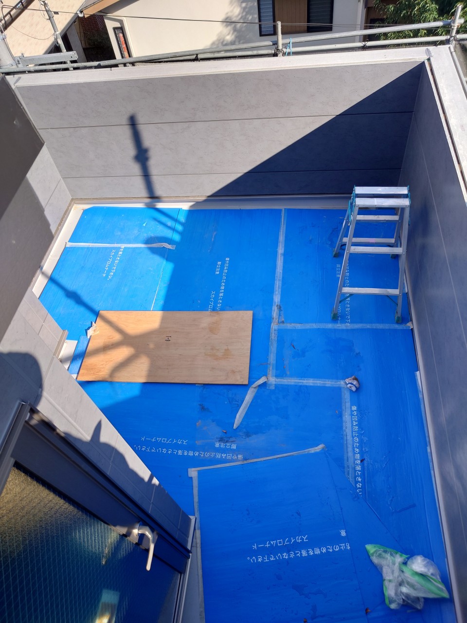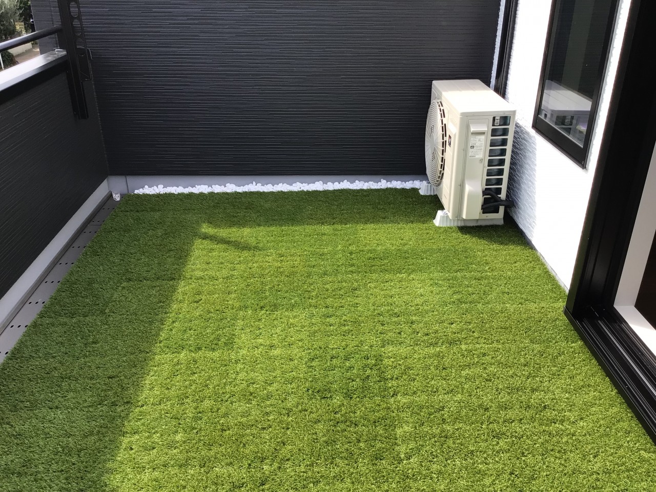 屋上の床は金属防水で仕上げられているので、人工芝を敷くこともできます。
