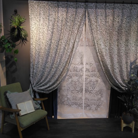 色合いが優しくとても洗練された雰囲気でありながら、どことなく懐古的な雰囲気のカーテンや