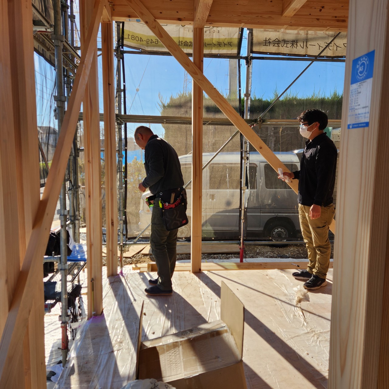 昨日大工さんと一緒に上棟後のお清めをしてきました。