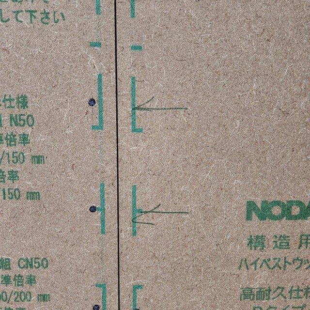 さて、先日八王子市山田町の現場で柱の外側に張る「構造用合板」の釘の間隔をチェックしてきました。