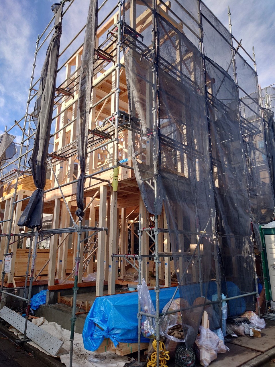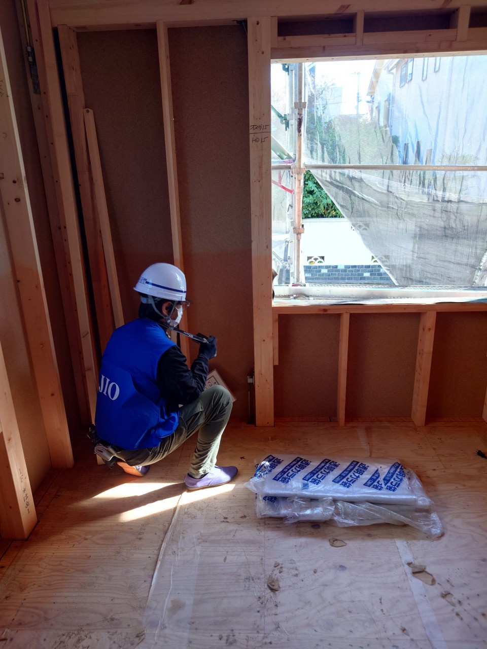 これから壁の中に断熱材をいれたり、電気配線、外壁のサイディング工事に進みます。